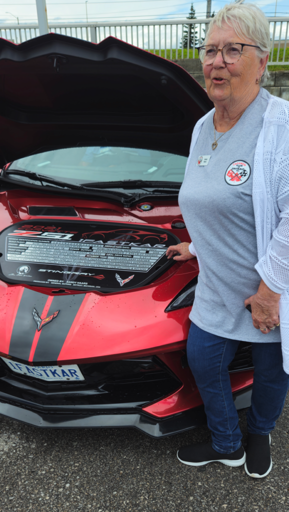I also talked to Casey Haars and his wife, Sandy, who joined the club two years ago. They attended the event in her 2021 red and black Stingray with the license plate 1FASTKAR. They bought it brand new. “I don’t like Ferraris and I don’t like Porsches, I’ve always liked Corvettes,” Sandy told me. She said she waited 35 years to own her own Corvette. She said when she first met her husband, he had a 1973 Corvette, then he went to a 1988, a 2007, a 2010, a 2014 and then a 2019. “He’s always been a fan of them, unfortunately he’s a double amputee and can’t drive,” she said.