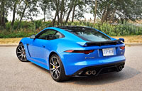 The already fabulous looking Jaguar F-Type SVR Coupe looks even more sensational in optional Velocity Blue with added carbon fibre trim. (Photo: Trevor Hofmann, Canadian Auto Press)