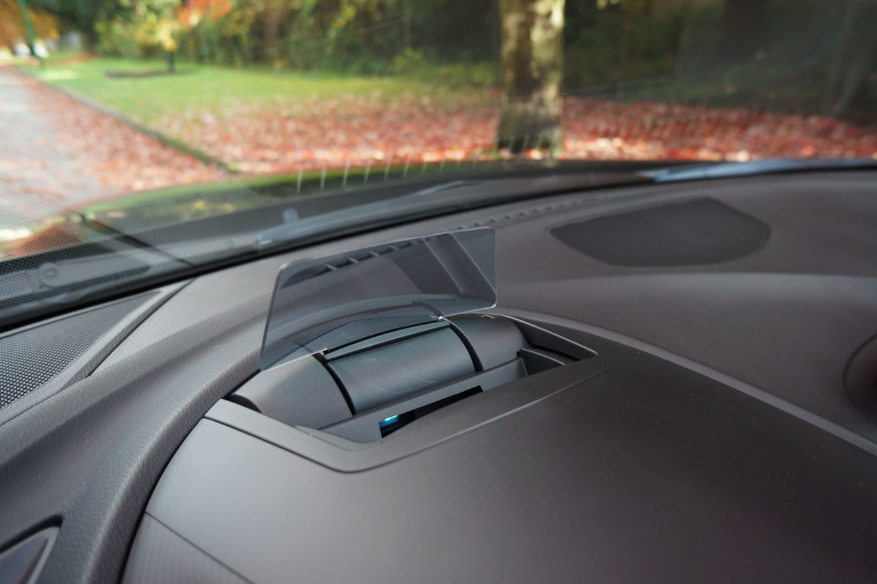 are just as advanced. For instance, the radio has a program that will find all the local stations automatically for you, almost like Audi’s MMI system. The only problem is that it doesn’t always find all the stations, omitting even the very strong ones, and oddly it doesn’t put them in any sensible numerical order, instead just randomly placing stations all over the place. As mentioned, the big rotating HMI dial used for accessing the infotainment system works a lot like iDrive or Audi’s MMI. Three buttons surround the controller for quick access to Home, Radio or Navigation settings, plus a return button. The volume button is to the right, but of course I was more inclined to use the volume switch on the steering wheel spoke. And remember I mentioned the heads-up display a couple of times before? Mazda actually calls it Active Driving Display. At first I thought it only showed the vehicle speed, which would have been totally redundant because about five inches below is the exact same digital speedometer readout, albeit not in
