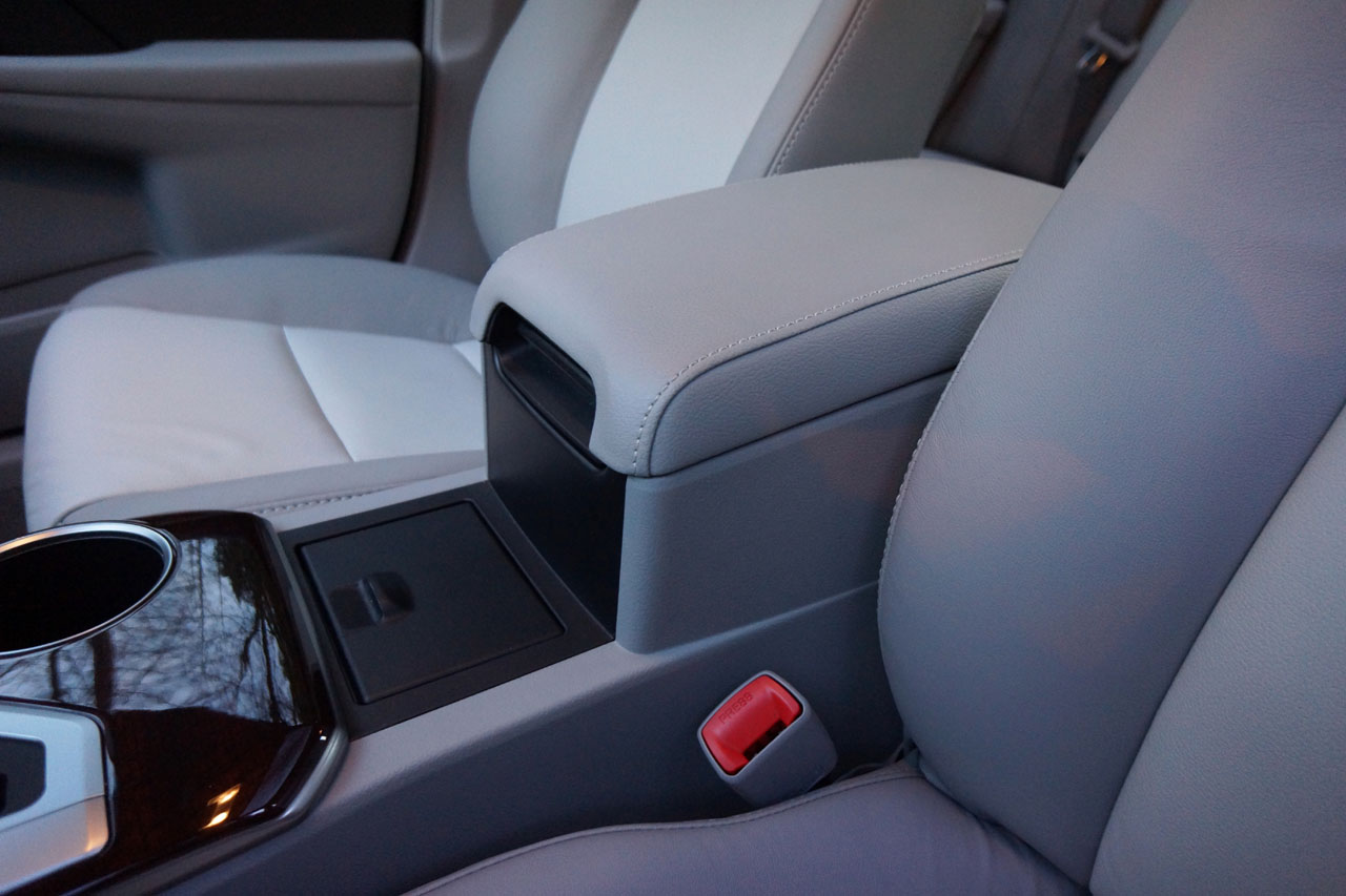 problems powering the weighty load up some steep mountain passes, helped along by a transmission that always seem to find the right gear, while trekking through an impromptu snowstorm that included a few patches of black ice proved to hardly be an issue at all, the Camry’s standard traction and stability control plus ABS/EBD and BA-enhanced four-wheel discs totally up to the task. Everyone was kept comfortable during each four-hour stint and my oldest daughter was especially impressed with the XLE’s upgraded audio, her iPhone plugged into the standard USB more often than not, while playing DJ to everyone’s enjoyment (she has great – read my – taste in music). Big water bottle cutouts in the front doors allowed for maximum hydration, while the rear doors incorporate a multi-use setup ideal for juice boxes.