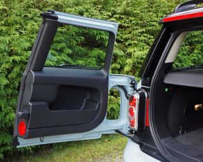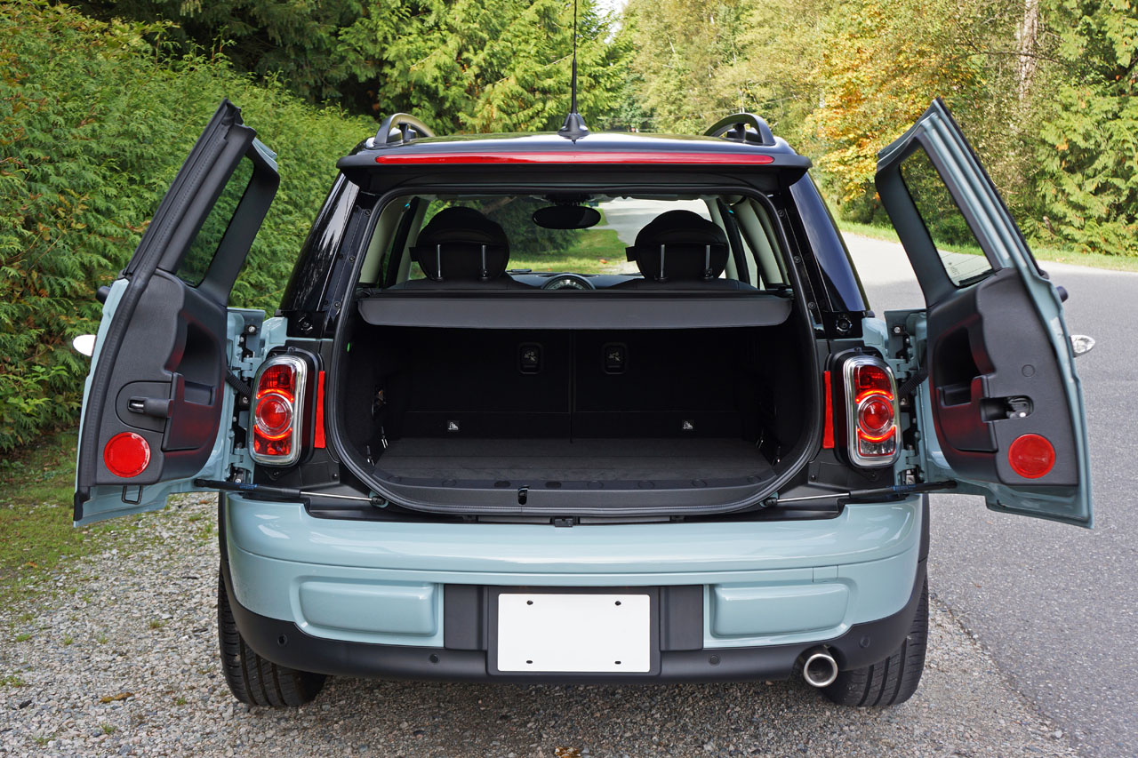 with its Countryman crossover SUV in 2010, the Clubman was its most practical model, partly due to this extra side door making entering and exiting the rear seats a great deal easier, but mostly because that back door opens up to a considerably larger rear seating area that, thanks to an extra 63 millimeters (2.5 inches) of legroom, now fits six-footers without concern. Likewise, with 160 millimeters (6.3 inches) greater depth there’s 99 litres (3.5 cubic feet) of additional cargo space behind its 50/50 split-folding rear seatbacks and 270 litres (9.5 cubic feet) more when they’re folded flat, resulting in 930 litres (32.8 cubic feet) of total available cargo space, all behind a unique set of Dutch-oven doors that will either be a bonus or a bane to you depending on how you use the car. Getting gear in and out was no