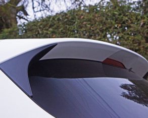 a racy upgrade that only had me wishing they’d applied the same thread to the steering wheel, shift knob and handbrake lever, but at least they added a single stitch of the red stuff along the door panel armrests front and rear, the latter to complement the matching red-stitched, leather-upholstered rear bench seat. The door uppers are hard plastic in the rear albeit soft surfaced up front, which is par for the course in the compact class. The GT sports a strip of black lacquered plastic across its instrument panel and another small panel of the inky glossed surfacing for the gear selector on the lower console. I like the CUV’s use of brushed metallic trim even better, which is applied in just the right amounts throughout the interior.