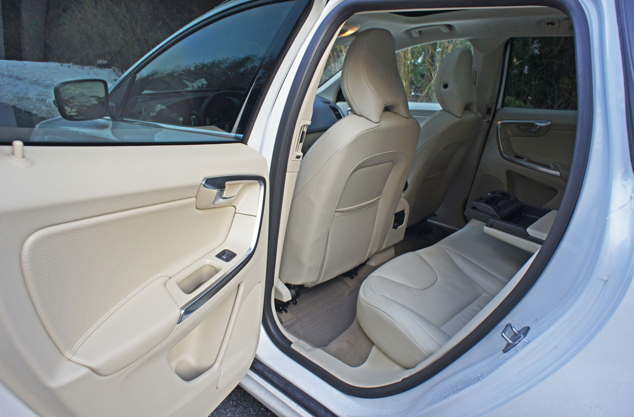 interior roominess hasn’t changed one iota, making old and new cargo capacities a matching 873 litres (30.8 cubic feet) with the handy 40/20/40-split folding rear seatbacks upright and 1,907 litres (67.3 cubic feet) when they’re all folded flat. Even the ground clearance remains an impressive 230 mm (9.0 inches), useful for wading through deep snow or tackling rock or stump strewn light-duty trails, a process made safer thanks to standard front and rear skid plates. If such adventures include pulling a boat or camp trailer you’ll be happy to hear the 2015 XC60’s tow rating has been uprated to 1,588 kilos (3,500 lbs).