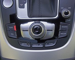 buttons and scrolling controls. The prerequisite infotainment system is smaller than average, but I for one don’t mind because some of the large screens in today’s cars can cause sensory overload while driving, and besides this display’s resolution is very high and Audi’s MMI system organization, graphics and lower console-mounted controller are extremely good, especially from a functionality point of view. The audio system is excellent and benefits from a CD or optional DVD player, rare these days, allowing higher fidelity sound than most of us can achieve on our smartphones or personal players. The majority of audio controls are integrated within the MMI with a rotating volume dial positioned on the lower console next to the larger MMI controller, both easy to reach without taking eyes from the road.