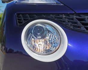 My particular example was made even more memorable thanks to purplish dark Cosmic Blue paint and unique Bright White highlights ringing the headlamps, slashed under my SL’s fog lights in said boomerang shape, coating the LED turn signal-infused mirror caps, stretching along the rocker panel moldings, spanning the width of the liftgate lip, and again garnishing the lower rear valance in the same boomerang shape that I’ve now mentioned ad nauseam, all part of the 2015 Juke’s new “Colour Studio” personalization program that offers 12 accessory trims in eight possible colour choices. It almost seems odd that Nissan didn’t finish this white accessories effect off with a set of