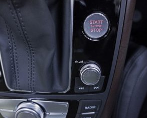 upholstery, a power tilt and telescopic heatable leather-wrapped multi-function three-spoke sport steering wheel, auto-dimming rearview and side mirrors, dual-zone automatic climate control, a high-resolution driver information system, the eight-inch powered infotainment system noted earlier, navigation, satellite radio, Bluetooth hands-free with audio streaming, and two new USB ports in the centre console, one replacing the old car’s outdated 30-pin iPod plug that also connected through to the MMI system, and the other one powered (thanks for taking care of we Android users Audi), while the standard list also includes cruise control, the aforementioned front and rear parking sensors and rear seat pass-through, Audi pre-sense frontal crash mitigation, and all the usual safety equipment including knee blockers for the airbag system.
