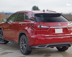 front seats, the 4.2-inch TFT multi-information display and 12.3-inch infotainment display with navigation and backup camera noted earlier, front and rear parking sonar, rain-sensing wipers, overhead sunglasses storage, auto-dimming rearview and side mirrors, the latter also power-folding and heatable, a powered liftgate, a cargo net, mat and retractable cover, blind spot monitoring with rear cross-traffic alert, all the usual airbags including one for the driver’s knees and rear seat side-thorax airbags. All of this retails for $68,950 plus freight and dealer fees in base RX 450h guise or $76,200 with the F Sport package. My tester came in Matador Red Mica (an oddly bloody choice for a name), which was a no-cost option, while only a limited assortment of accessories is available after that.