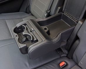greater roominess for those in back. The outboard seats are extremely comfortable too, with good lower back support, while as noted earlier you can power the seatback rake, ideal for younger and older passengers that might be physically challenged to operate a conventional lever mechanism. The seatbacks’ aforementioned power folding process works effortlessly, the buttons found on the sidewall of the cargo area and below each seat cushion. They drop down quickly and easily while remaining fairly flat for loading in sizable cargo, the rear seatbacks gradually rising for a narrower floor to ceiling measurement than at the back (important if you’re loading in something long and tall like a shelf). Overall there’s a lot of space for both passengers and cargo, and while the seatbacks fold down 60/40 when utilizing the powered mechanism there’s a manual-folding centre pass-through that allows for a 40/20/40 seatback configuration. This makes