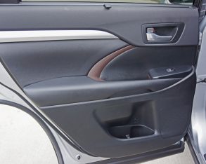 for the interior, the Highlander raised the game amongst mid-size crossover SUVs when it debuted two years ago, prompting others to improve or get left behind. Details such as fabric-wrapped A-pillars, a leather-like stitched soft touch dash top, pliable premium door uppers front and rear, a nice padded leatherette tray that flows along the underside of the dash, and superb instrument panel interfaces set it apart, along with Toyota’s usual high quality materials, excellent fit and finish, unique trim colour choices (key areas in my tester were finished in a rich chocolate brown), and generous helping of standard and optional features.