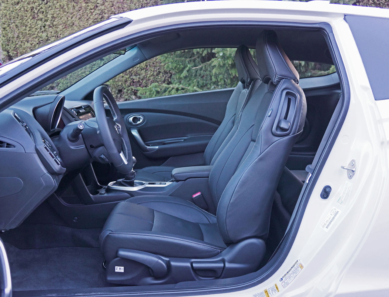 Two-way seat heaters offer toasty warmth in their highest position, while the two seats they warm are upholstered in leather and stitched with sporty light grey contrasting thread. They’re plenty supportive, incidentally, something I probably should’ve commented on in the driving portion of my review, their side bolsters particularly good at keeping backside in place during hard cornering, while a neat set of package bins sit in behind where rear passengers normally reside. You can flip the plastic backing down flat to increase the cargo bay’s size to a surprisingly large and