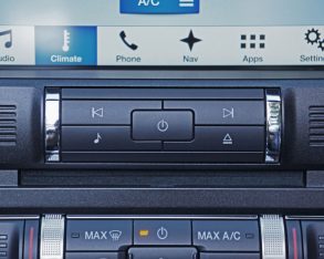 Ford added some additional wow factor to my tester with optional engine-turn dark aluminum dash inlays, the centre portion filled with some fabulous looking chrome-rimmed