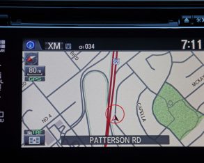 you may have guessed the car I was driving wasn’t base, that DX model price quoted previously considerably more down to earth. The version tested here is in $21,590 top-line EX-L Navi trim upgraded to $22,890 thanks to an optional automatic CVT, a car vying for premium status other than a near complete lack of soft touch surfaces or other traditional luxury trappings such as cloth pillars, genuine wood or metal accents, etcetera. We can leave such niceties to much more expensive Mini 5 doors, the Fit, as noted, more to do with practicalities, albeit this one a pretty high-tech pragmatist. Instead, the EX-L Navi gets a lot of nice satin-silver faux metal to brighten up the cabin, plus some exclusive features like leather upholstery, a leather-wrapped shift knob to go along with the leather-clad steering wheel pulled up from the lesser EX, the automatic climate control system, voice recognition and navigation-infused infotainment system plus the pushbutton ignition system noted earlier, the latter combined with proximity sensing