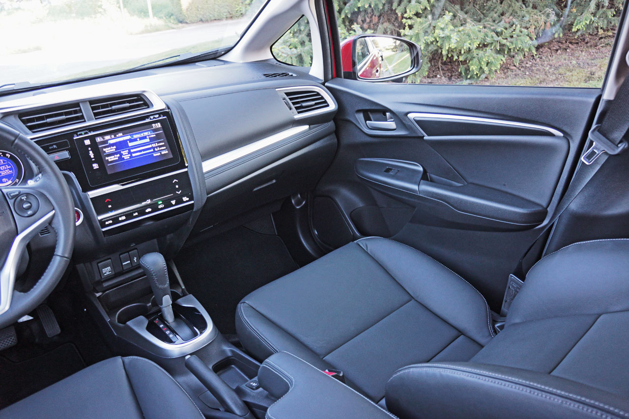 handy when downshifting during a couple of sporty test runs, but they don’t do more than offer a placebo effect when upshifting, the CVT best left to its own very smooth and capable devices when trying to gain speed. The engine accelerates well with a considerable 130 horsepower and more than reasonable 114 lb-ft of torque, the Fit fairly lightweight at just 1,201 kilos (2,648 lbs) as tested or 1,177 kg (2,595 lbs) with the manual and therefore hardly much of a drag on the powertrain.