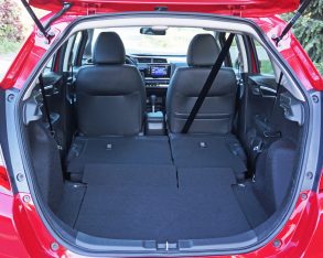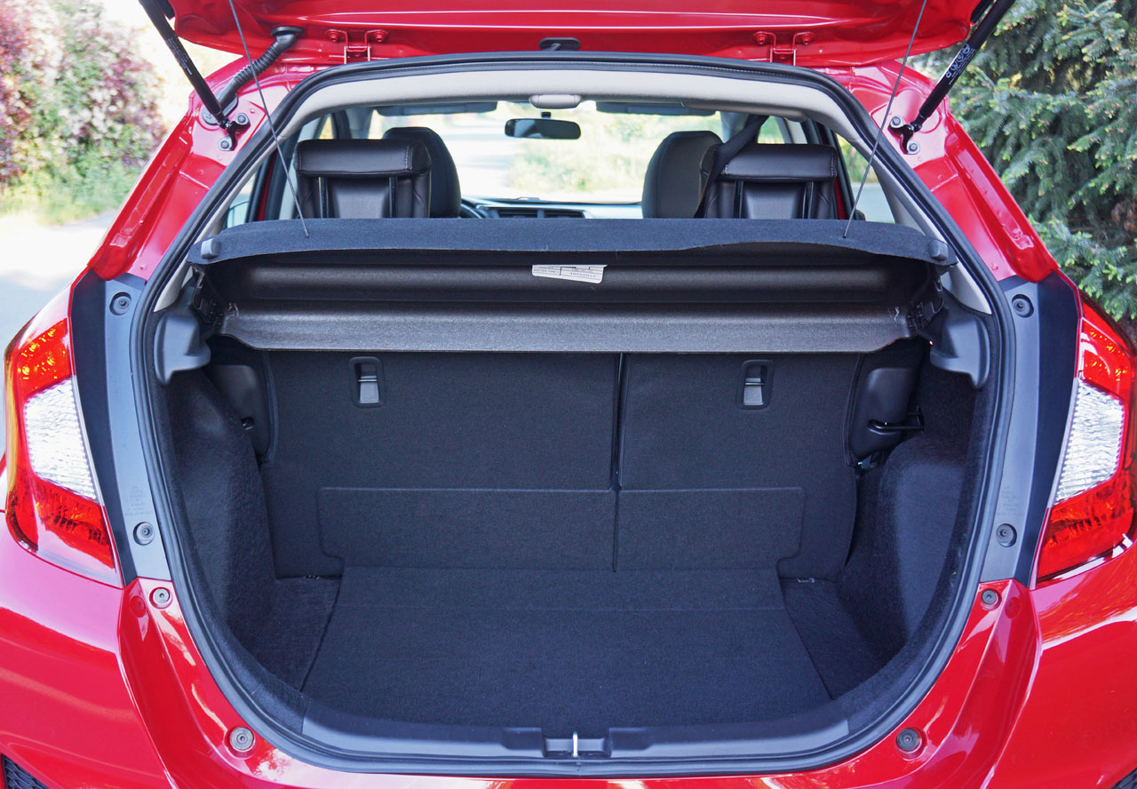 Separating the Fit from mere mortal subcompacts is the revolutionary “Magic Seat” system in back that not only folds flat for hauling gear in the usual 60/40 configuration, albeit with a total of 1,492 litres (52.7 cubic feet) available a much roomier one than any competitor, but you can also flip the lower cushions upward to convert the rear seating area into a cavernous cargo hold. This is especially useful for loading in taller items such as bicycles or large plants you don’t want to get crushed. With the seats like this you still get 470 litres (16.6 cubic feet) of luggage space behind the seatbacks, which of course remains the same if you’re filling