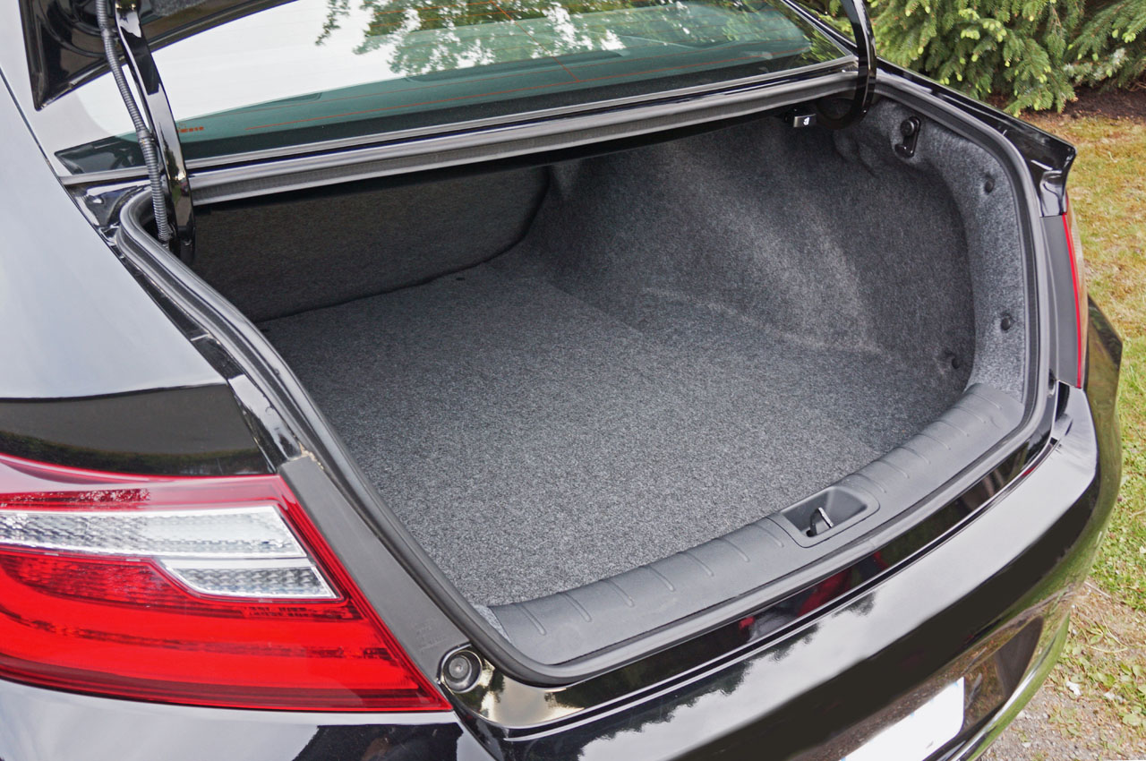 All this performance and luxury in a car that offers loads of room up front and fits fairly large adults in the rear, my five-foot-eight medium-build frame leaving about three to four inches in front of my knees, plenty of room for my feet, approximately the same three to four inches above my head, and no shortage of space on either side. Honda doesn’t provide a centre armrest in back, but armrests are fixed to the side panels, albeit hard plastic ones, while the rest of the rear panels are hard plastic as well, so it’s not exactly a luxurious experience for those