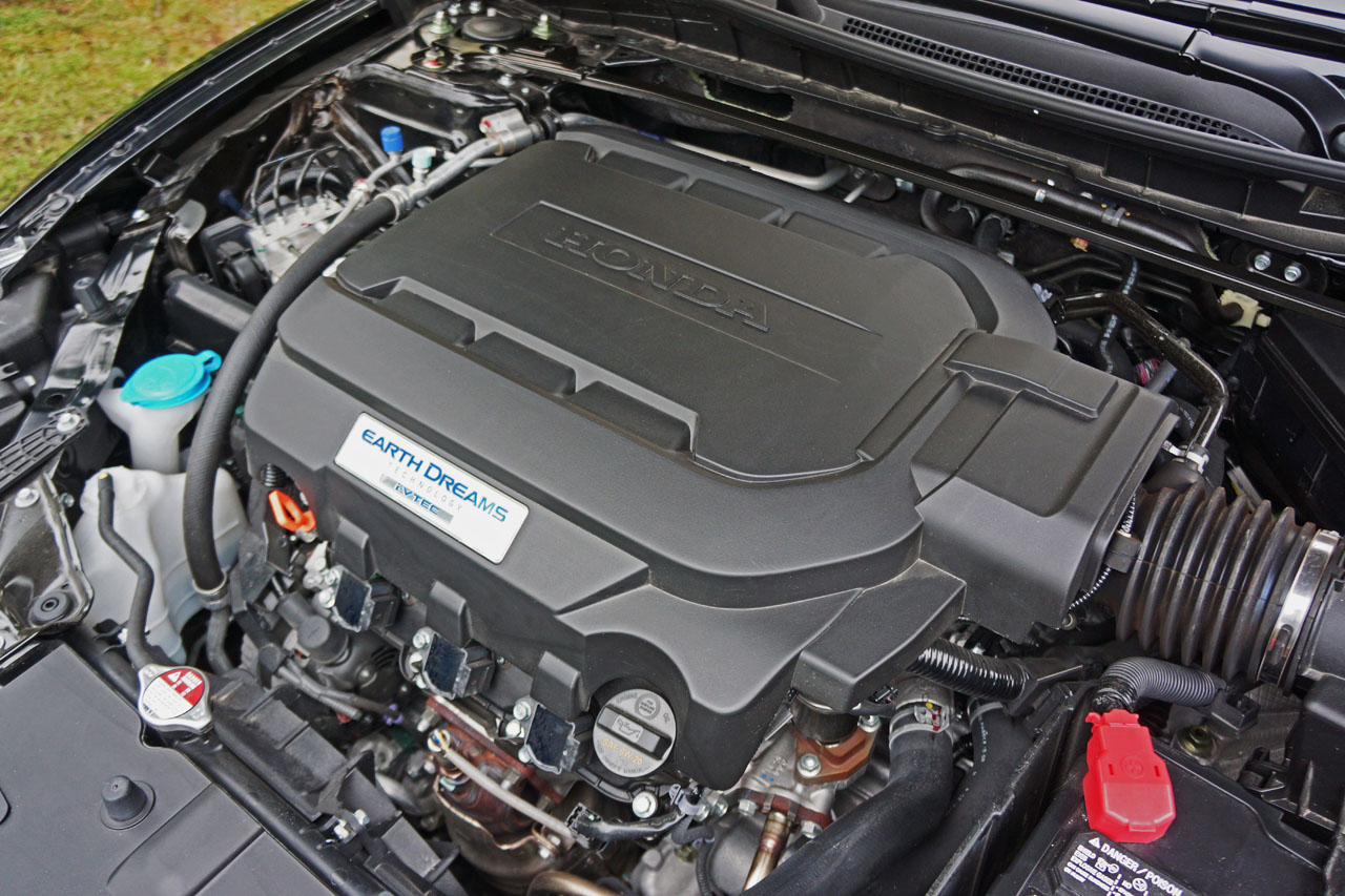 V6 include auto-on/off LED headlamps with auto high beams, LED front turn signals, side mirror-mounted LED turn signals, proximity entry with pushbutton ignition, rain-sensing wipers, a leather-wrapped multi-function steering wheel, one-touch turn signals, an auto-dimming rearview mirror, Honda’s fabulous LaneWatch blindspot display, a multi-angle rearview camera with dynamic guidelines, front and rear parking sensors, Bluetooth hands-free, a 10-way powered driver’s seat with powered lumbar support and memory, heatable front seats, perforated leather upholstery, the infotainment system mentioned earlier with text and email capability, Wi-Fi tethering, Siri Eyes Free, two USBs, 360-watt AM/FM/CD/MP3/WMA audio with seven speakers including a sub, Bluetooth streaming audio, HD and satellite radio, active noise cancellation, and much more.