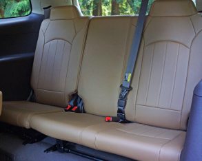 driver’s seat is large, spacious, fairly adjustable and therefore quite comfortable, but there’s almost no lateral support so, with one hand firmly gripping whatever it can in order to keep body in place, its performance capabilities are limited despite a reasonably agile suspension. Of course the Enclave is more about comfort than speed, its ride sublime even over rougher pavement, its cabin incredibly quiet, and therefore its highway cruising competence hard to beat. On that note it loves to stretch its legs, so to speak, effortlessly taking to high-speed straights and nice long curves. This is an ideal conveyance for the yearly summer road trip or weekend jaunts to the ski hill in winter, its fuel economy even pretty good at a claimed 14.2 L/100km city, 9.9 highway and 12.3 combined with FWD or 14.6 city, 10.2 highway and 12.6 combined with AWD, plus it only requires cheaper regular fuel.