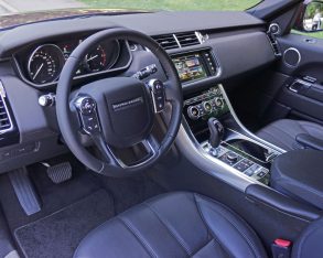 Ride quality with both trims is excellent thanks to a standard air suspension that also improves handling, the latter being one of the Sport’s key attributes since the model arrived on the scene in 2005 and even more so when it lost some 320 to 360 kilos (700 to 800 lbs) (depending on trim) as part of a new aluminum-intensive 2014 model year diet, this despite gaining 180 mm (7.1 inches) in wheelbase and 100 mm (4.0 inches) overall to a new fully mid-size length of 4,851 mm (191 inches). The updated Sport combines Evoque styling cues with those of the full-size Range Rover,
