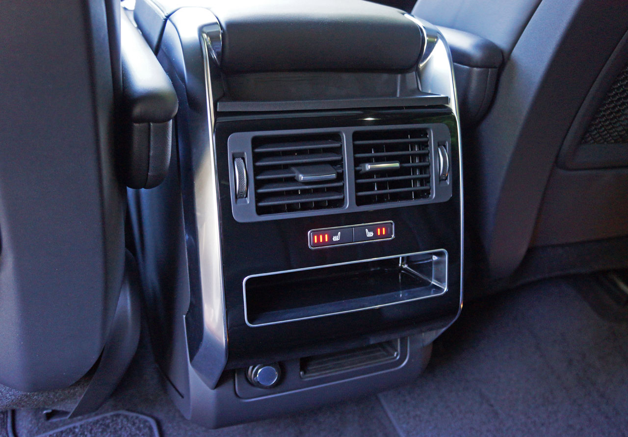 Of course, it’s ultimately luxurious inside. To be clear, my tester was a step above the base SE model, the move to HSE prerequisite to getting turbo-diesel power and the only trim to receive it. The move up to HSE includes one-inch larger 20-inch twinned five-spoke alloys, aluminum-look exterior trim detailing, front fog lamps, a power-sliding panoramic sunroof (the base one is fixed), heavy-duty branded aluminum tread plates, 14-way powered front seats with memory, Oxford perforated leather upholstery, and a universal garage door opener, this over and above the base model’s particularly well stocked feature list highlighted by auto on/off