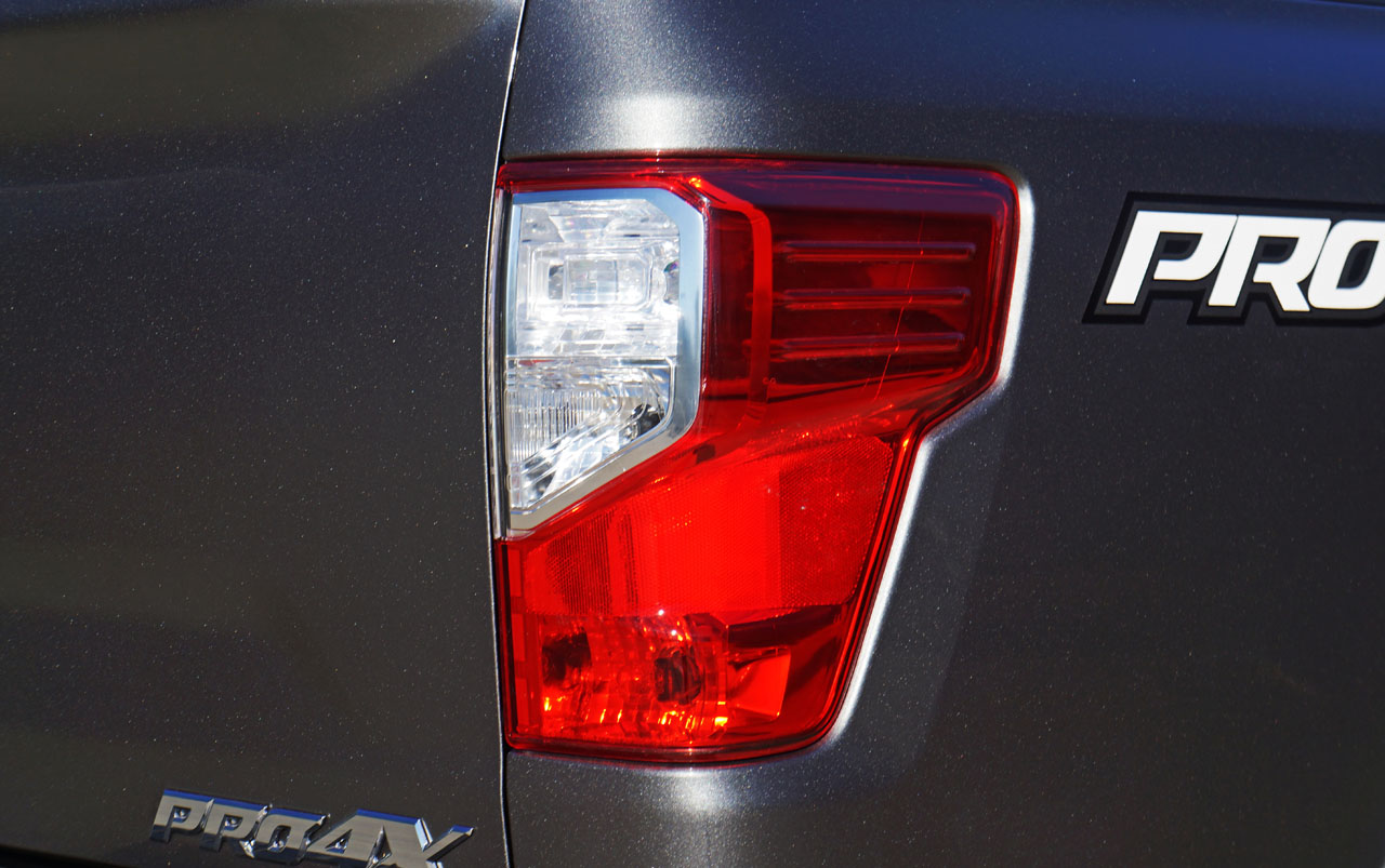 As mentioned my tester was dressed up in Pro-4X duds, which means it’s the sportiest looking and most capable Titan off-road. Along with a number of features pulled up from lesser trims that will mostly remain unnamed for lack of space, other than 14.2-inch front and 14.4-inch rear vented disc brakes developed from Nissan’s Commercial vehicles program, the Pro-4X includes dark-finish 18-inch alloys on