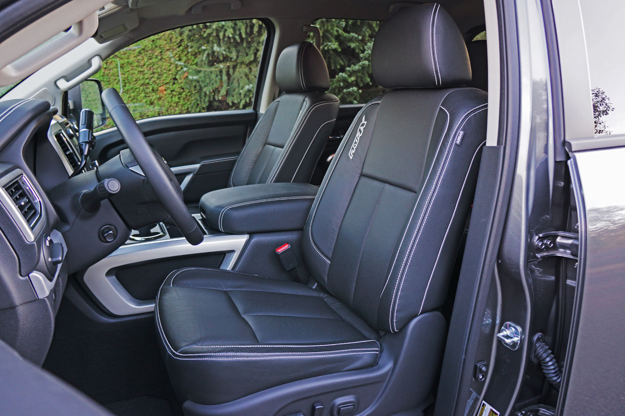 Once inside it’s easy to see the countless improvements from old to new, the 2016 Titan a thorough modernization in every respect. Those who seek premium-like creature comforts will find more soft-touch surfaces in one of the new top-level GM trucks, these even getting a pliable synthetic glove box lid and more, but most others should be plenty happy with Pro-4X trim when all the extras are added, or one of the other leather-lined Titan examples.