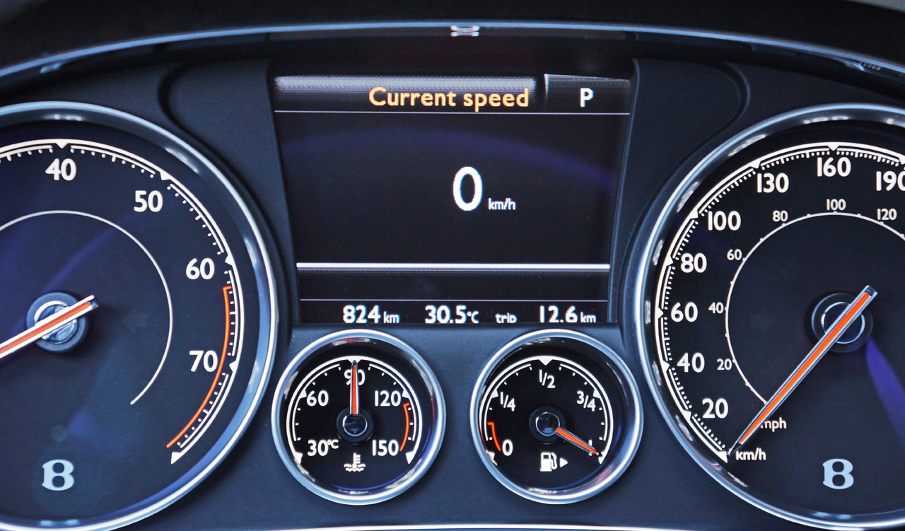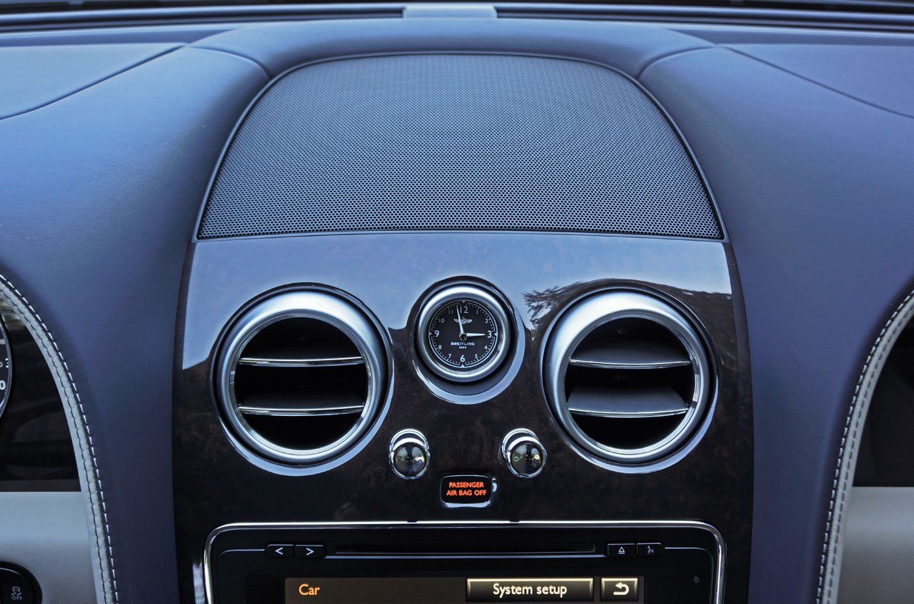 supplies the analog clock at dash-central, although likely incorporating a lower-end ETA or Valjoux movement rather than anything made in-house at La Chaux-de-Fonds (their Mulliner Tourbillon, which is currently available in the new Bentayga for a cool $200k USD would be nice, or a B01, 02, 04 or 06 automatic movement, although the more pedestrian quartz Emergency II’s locator beacon would likely be most useful in a car). The Flying Spur’s clock is a more tastefully discrete timepiece than the usual Breitling for Bentley bling, although I would have also appreciated a simple digital clock permanently housed within the gauge cluster or a corner of the infotainment display.