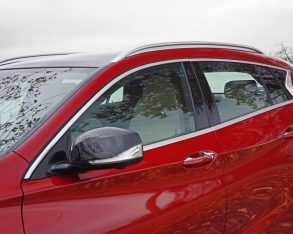 off I like the way it looks, Infiniti pulling off the design very well. Its front end is 100 percent Infiniti as is its kinked C-pillar, while the LED enhanced headlight and taillight designs are particularly attractive. Other stylish highlights include some nice satin silver detailing for the front and rear undertrays, more satin silver brightwork around the side windows and roof rails, and a particularly good looking set of machine-finished 18-inch alloys. Certainly there are visible GLA elements, but most won’t notice the vehicle’s general shape comparison because of the way Infiniti has masterfully styled it.