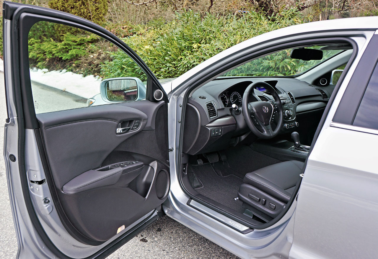 A shortlist includes standard V6 power, AWD, Acura’s Jewel Eye LED headlights, LED taillights, 18-inch alloys, proximity-sensing keyless entry, pushbutton ignition (that’s made from anodized red metal for a sporty touch), ambient cabin lighting, a leather-wrapped multi-function steering wheel, dual-zone auto climate control with large dials at each side for easy operation while wearing winter gloves, an auto-dimming rearview mirror, five-inch colour infotainment, a multi-angle rearview camera with guidelines, Bluetooth phone and streaming audio, a 360-watt seven-speaker stereo, satellite radio, Siri Eyes Free, text messaging functionality, eight-way powered and heated front seats with driver’s side memory that also controls the side mirrors which include auto reverse tilt, a powered moonroof, a HomeLink garage door opener, active sound control, a powered liftgate, and one of the best assortments of standard safety equipment in the industry.
