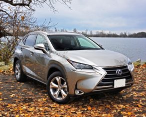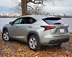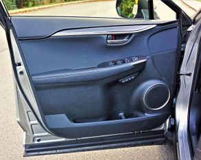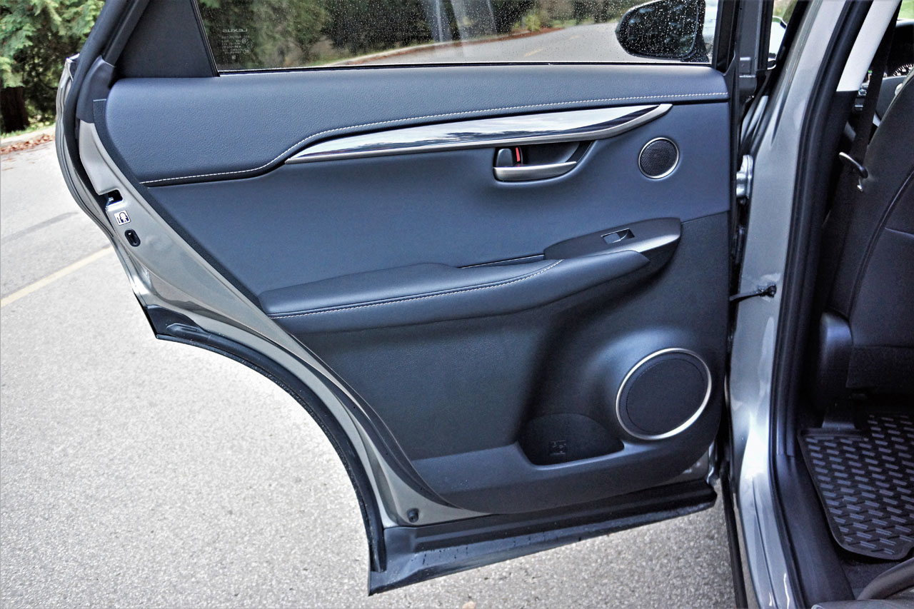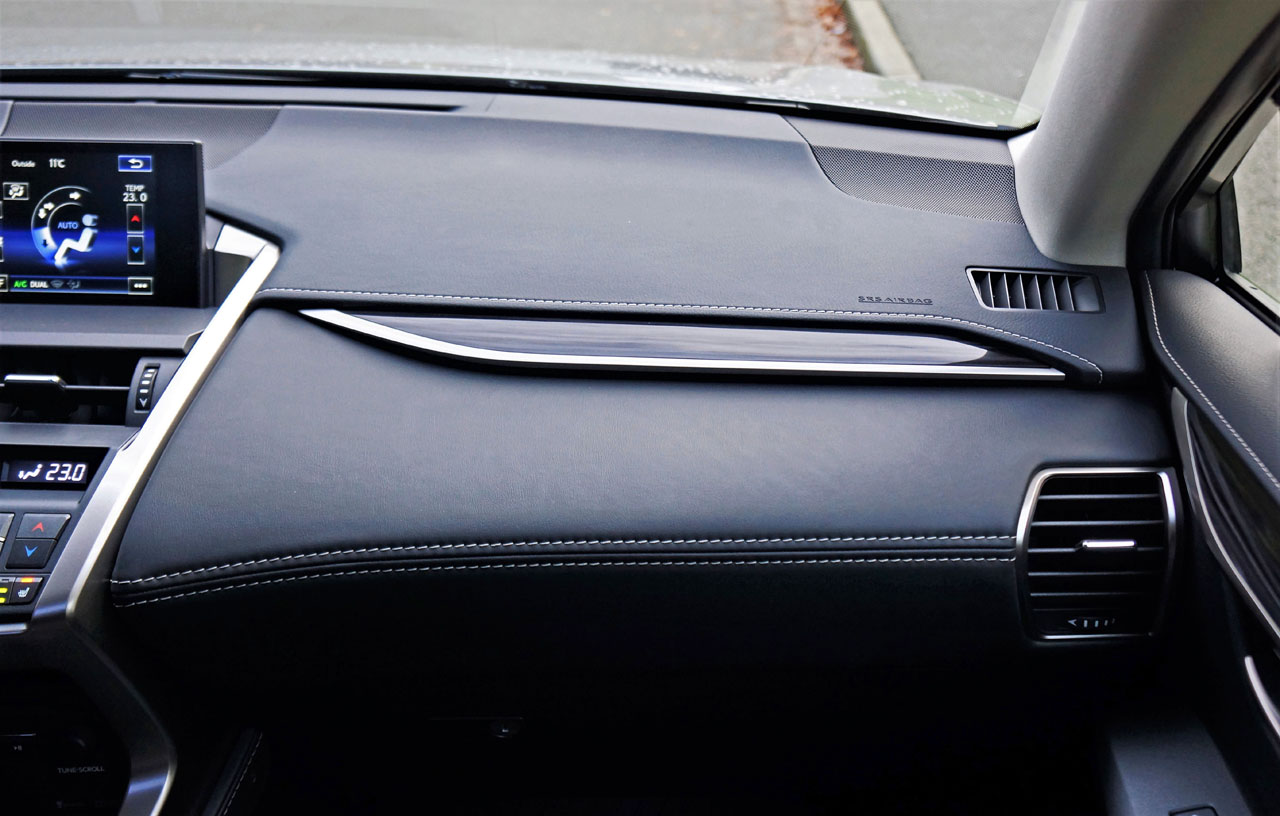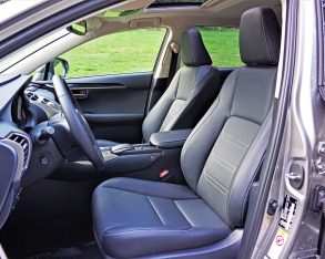 radar cruise control, head-up display, Qi wireless device charging, eight-speaker audio, stunning grey Shimamoku hardwood inlays, perforated leather upholstery with contrast stitching, powered rear seat releases with switches on the dash and cargo compartment, front and rear parking sensors, blindspot monitoring with rear cross-traffic alert, a pre-collision system with emergency autonomous braking, lane departure alert with steering assist, and more, raising the price to $61,000 plus freight and fees. These latter items earn the NX 300h Executive a Top Safety Pick Plus rating from the IIHS.