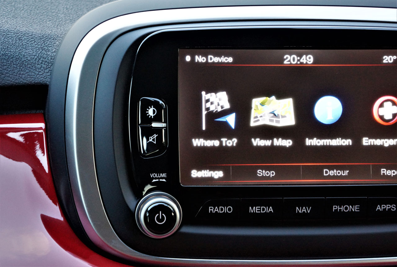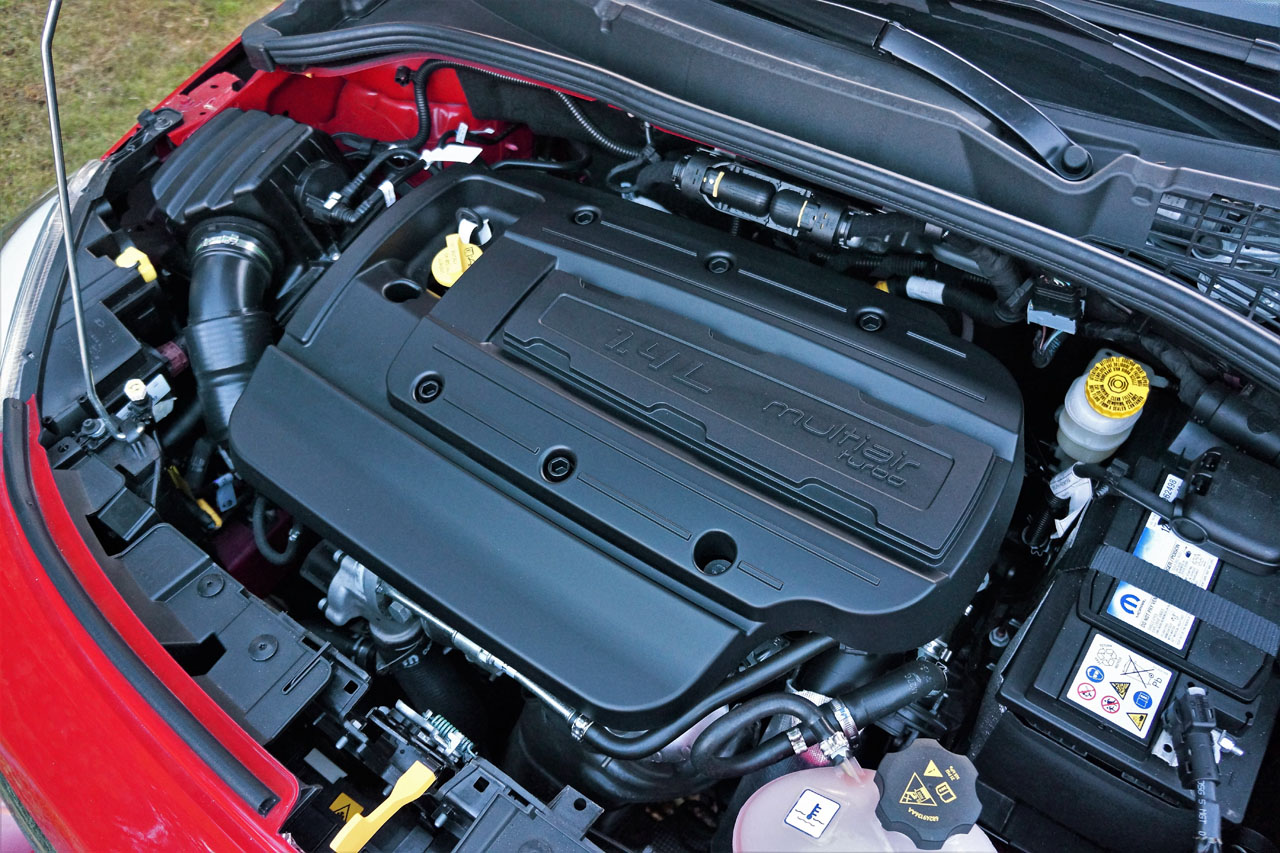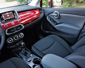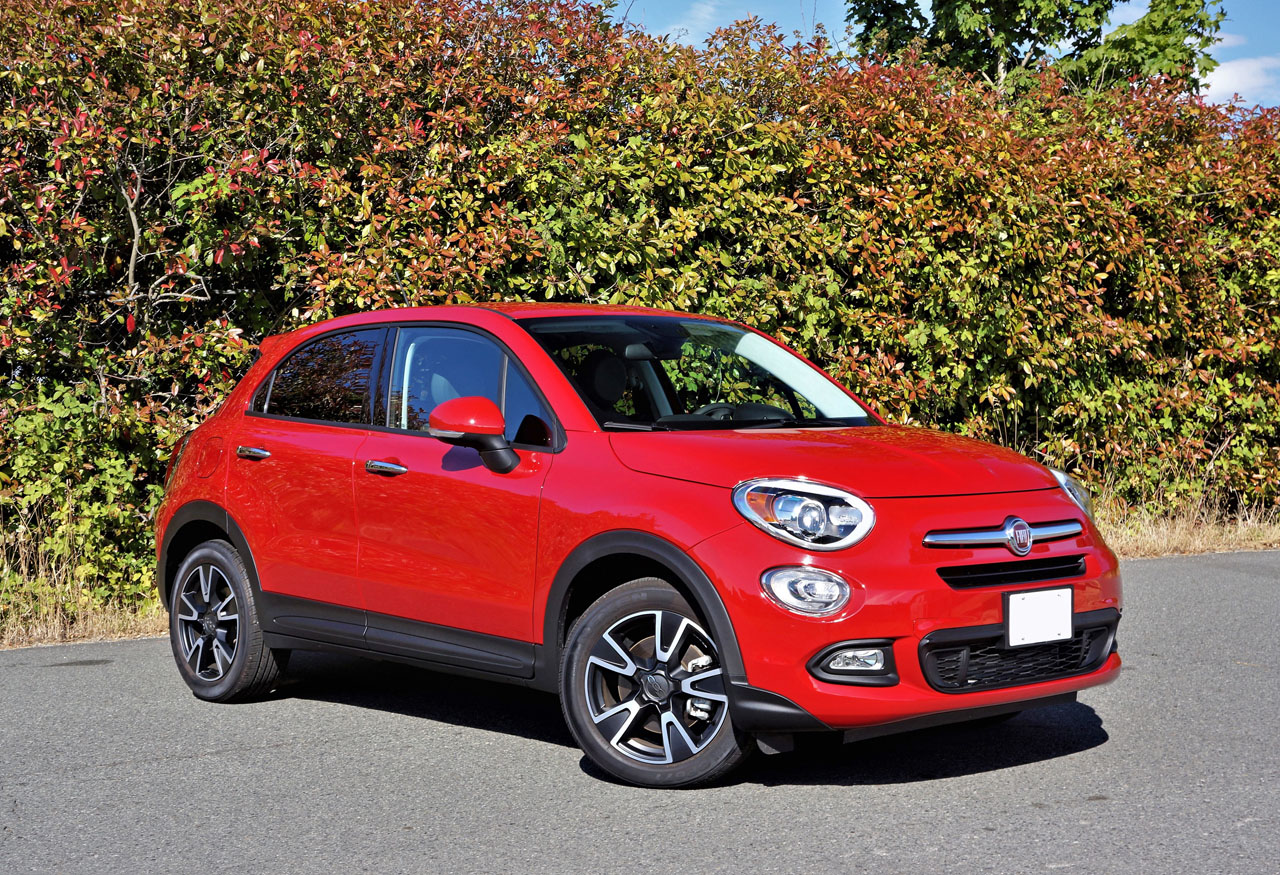 standard feature set up a significant notch from the base 500X thanks to 17-inch alloys on 215/55 all-seasons in place of 16-inch steel rims on 215/60s, a sportier 3.73 final drive ratio instead of 4.43, Fiat’s Dynamic Selector with three driving modes, auto on/off headlamps, fog lamps with cornering capability, deep tint privacy glass, remote start (with the automatic), proximity-sensing keyless entry with pushbutton ignition, a “Premium wrapped” leatherette steering wheel rim, a leather-wrapped shift knob, six-speaker audio, satellite radio with a one-year subscription, Bluetooth phone connectivity with streaming audio, a front centre sliding armrest, another USB port, illuminated vanity mirrors, a reversible height-adjustable cargo floor, etcetera.