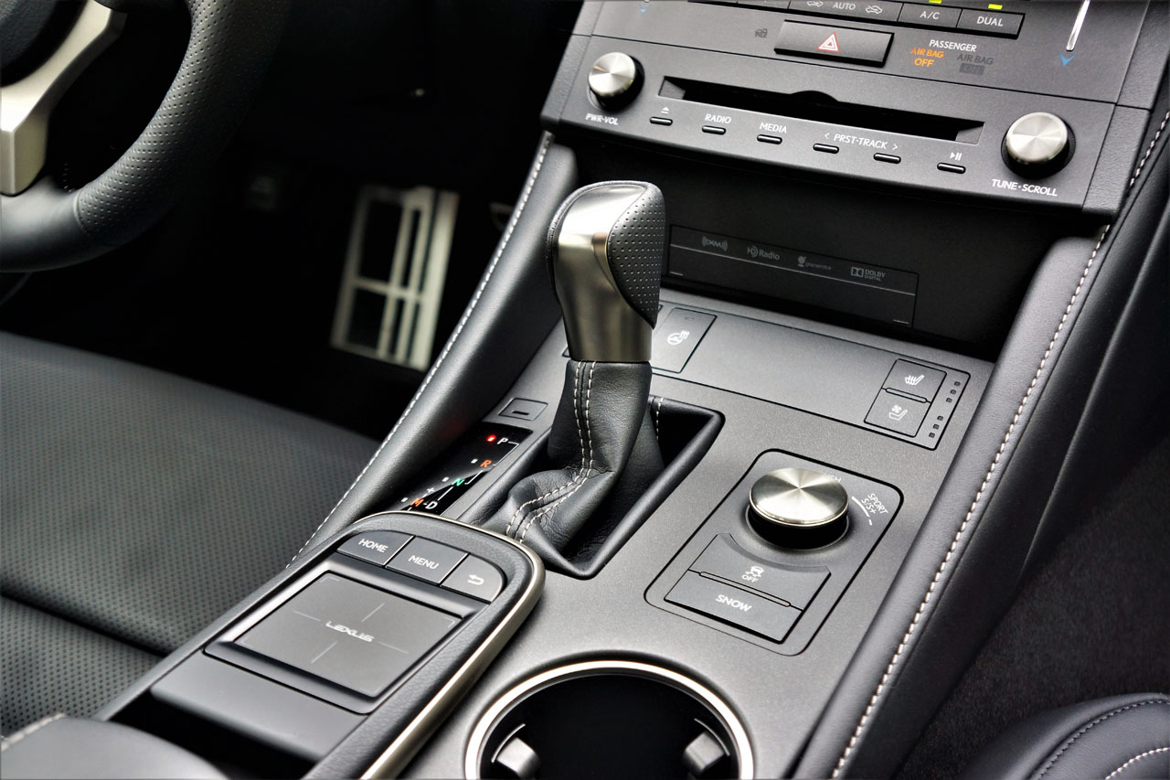 seat, ventilated front seats, a fully configurable LFA-style TFT instrument cluster, Lexus’ touchpad Remote Touch Interface for the infotainment system, navigation, active sound control, and blindspot monitoring with rear cross-traffic alert.
