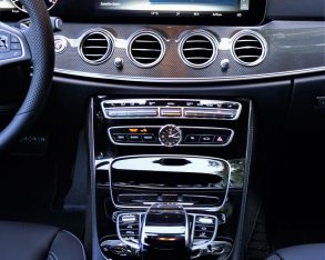 Yes, this Wagon variant was completely overhauled alongside the E-Class Sedan for the 2017 model year, resulting in a larger, roomier car that nevertheless weighs less. Both get some minor updates for 2018, not including my tester’s stunning no-charge Selenite Grey Metallic paint and its $1,000 optional 19-inch Twin 5-Spoke alloys. The five-door model and all E 400 four-doors get a 14-litre larger 80-litre fuel tank mind you, plus upgraded premium ambient interior lighting as standard, new Dark Ash hardwood along with carryover Brown Ash and Piano Black lacquer as no-cost options on the centre console (my tester had the latter), and a standard Parking package that includes a backup monitor, front and rear sensors, plus more.