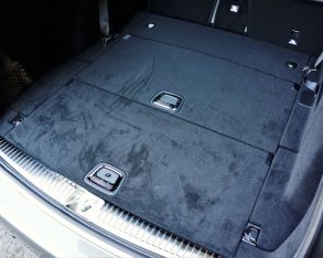 The standard power release buttons for folding the second-row seats down, which can be found right next to the seats on each side door sidewall, or from the cargo area sidewalls, make easy work of opening up the luggage area, while they flip down to an almost completely flat load floor. The only heavy lifting is caused by the incredibly beefy, over-engineered retractable cargo cover cross-member, which took a little more muscle to extract than expected. Still, it’s nice to know it was designed to last through the apocalypse, let alone double as a rear strut tower brace.