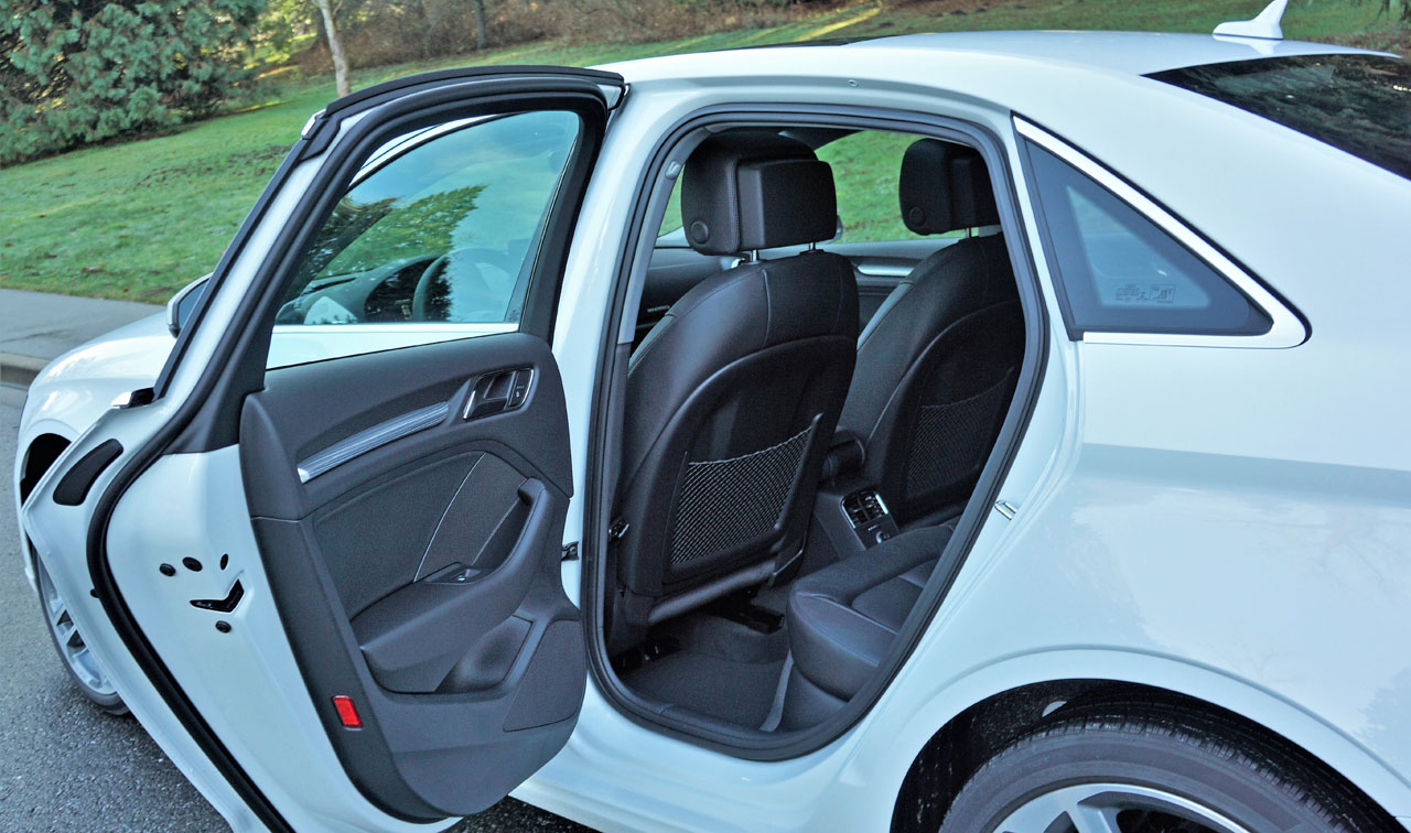 Both A3 trims benefit from highly responsive speed-sensitive rack and pinion steering and a wonderfully nimble fully independent chassis, the latter consisting of MacPherson struts with lower wishbones up front and a four-link suspension with separate springs and dampers in back, the setup combining for easy manageability and a nice comfortable ride through town, superb manoeuvrability on fast-paced windy back roads, and total stability at highway speeds up to 209 km/h (130 mph), but take note the Quattro system’s rear-drive mechanicals eat up trunk space, reducing available cargo capacity by 62 litres (2.2 cubic feet) to just 284 litres (10.0 cubic feet).