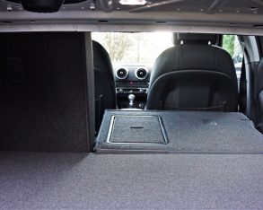 At least Audi finishes the A3 Sedan’s trunk off nicely with a carpeted floor, sidewalls and under-lid, plus chromed tie-down rings at each corner, while it provides 60/40-split rear seatbacks to expand on its usefulness, with a handy centre pass-through for placing longer cargo like skis down the middle so that a duo of rear passengers can enjoy the more comfortable window seats. Also notable, the rear seat folding mechanisms feel much better made than average, while along with a spare tire Audi has organized some small cubbies below the cargo floor for stowing items like work gloves and rags, or possibly a little tool kit.