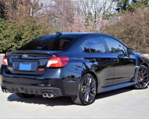 Lastly, on top of features that come standard with the regular $29,995 WRX and other previously noted features, all STI’s include a glossy black grille, brushed aluminum doorsills with STI branding, carpeted floor mats with a red embroidered STI logo, a leather-wrapped handbrake lever, front and rear seats upholstered in black and red leather with black ultrasuede inserts, dual-zone auto climate control, and a bevy of performance upgrades including a quick-ratio rack and pinion steering system, inverted KYB front MacPherson struts with forged aluminum lower suspension arms, performance suspension tuning, high-strength solid rubber engine mounts, a red powder-coated intake manifold, a close ratio six-speed manual gearbox, a Helical-type limited-slip front differential and a Torsen limited-slip rear diff, plus more for $40,195.