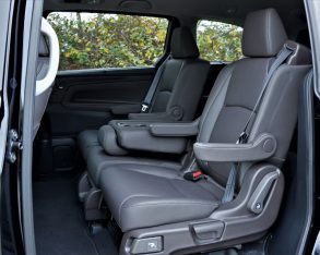 On top of this technical advantage, the Odyssey continues forward as the best minivan choice for those wanting a large dose of performance added to their ample helping of practicality. Clarifying this sporting image are paddle shifters behind each steering wheel spoke in every trim level, this from a utilitarian class that usually makes you feel lucky to receive any shifter control at all. Why this minivan-first inclusion of paddles? Take a look at the centre stack and everything becomes clear, with Honda’s pushbutton gear selector replacing the old lever that previously offered a regular push-and-pull manual mode. Now driver engagement takes place without the need to remove hands from the thick and sporty leather-wrapped steering wheel rim, the nicely contoured driver’s seat providing the other key ingredient for comfort and control.