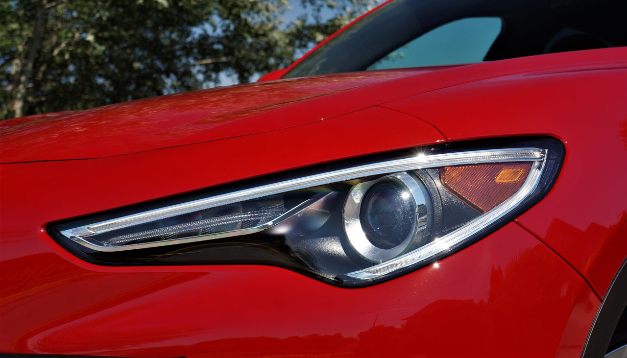 LEDs adorn the Stelvio’s headlamp clusters. (Photo: Trevor Hofmann, Canadian Auto Press)