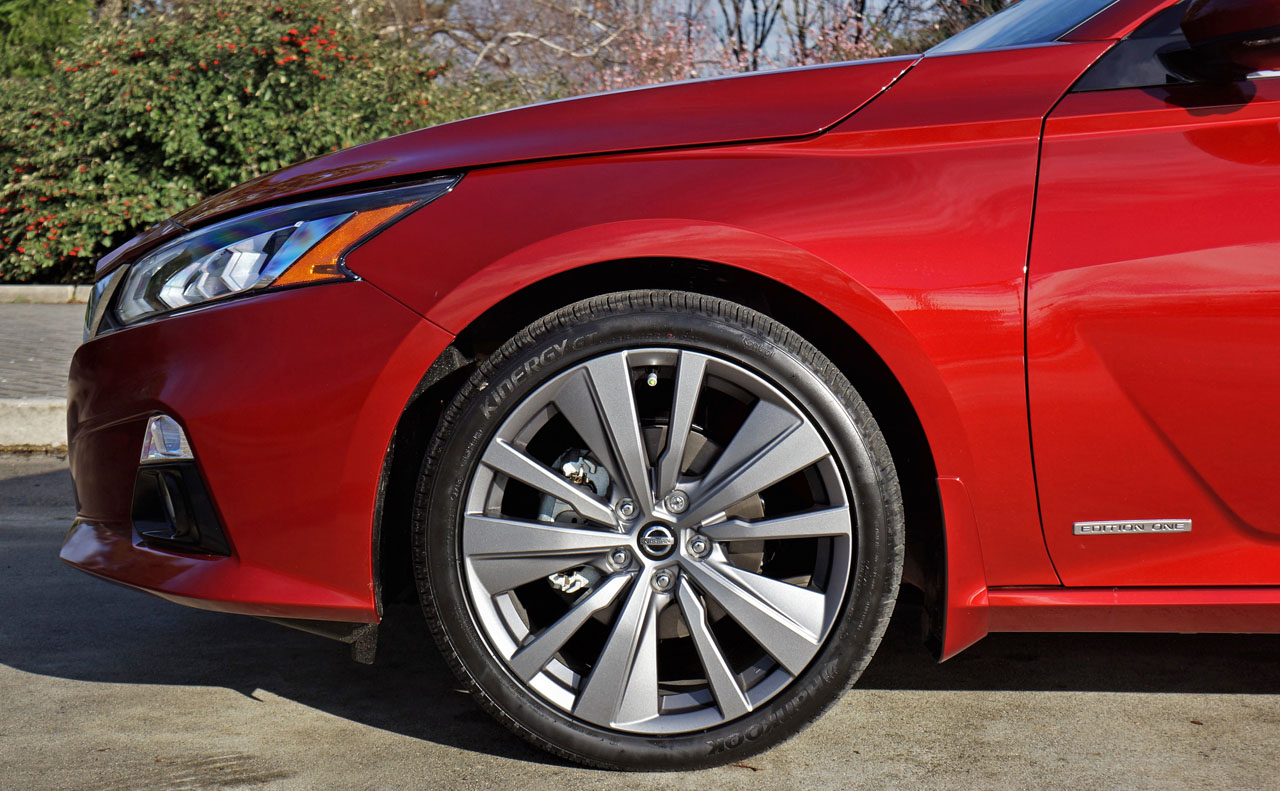Features in mind, the 2019 Altima starts at just $27,998 plus freight and fees for base S trim, $31,498 for the SV, $34,998 for Platinum, and $35,998 for the 250-example limited-production launch version dubbed Edition One. I’ll go into some of the standard and optional features available with other trims in a moment, but being that I’m actually covering this special model I should first mention that those just noted 19-inch alloys look really nice thanks to a matte grey finish and large chunky spokes.