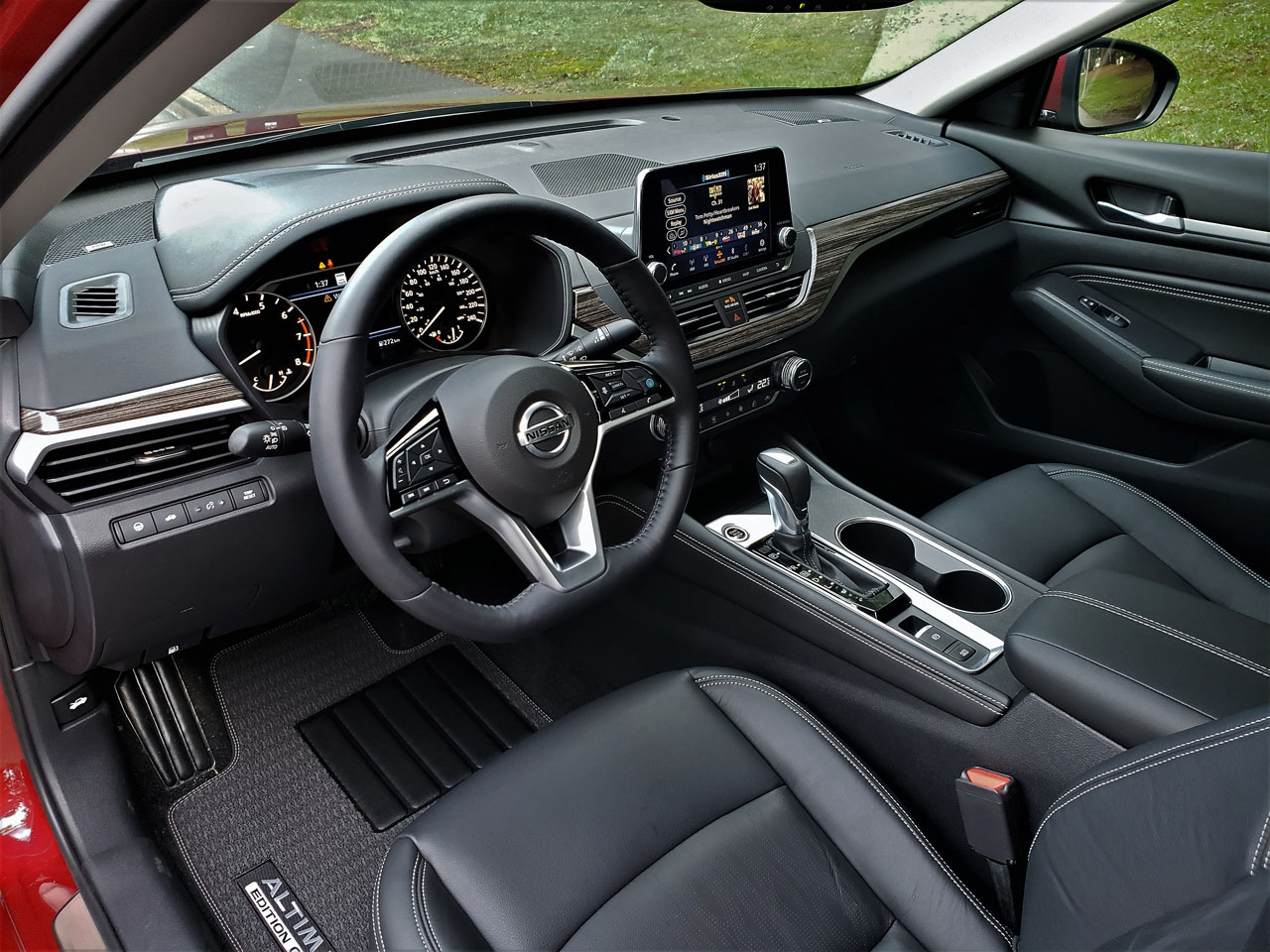 The Edition One also gets a larger than usual body-colour rear spoiler, “EDITION ONE” exterior badges on the lower portion of the front doors, ground lighting that emanates from below each side sill, illuminated “ALTIMA” metal kick plates, and really upscale grey carpeted floor mats with large “ALTIMA EDITION ONE” logos embroidered in a lighter silver/grey tone, along with the Platinum model’s standard feature set. By the way, you can find out all 2019 Altima pricing details at CarCostCanada, including dealer invoice pricing and rebate info that could save you thousands.