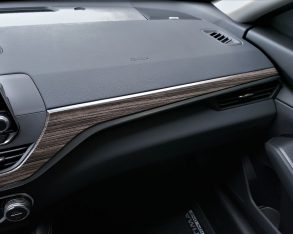 When climbing inside I was first impressed with the Altima’s clean, contemporary design and better use of higher quality premium materials when compared to the outgoing Altima. When seated up front, most surfaces above the waistline are made from soft-touch synthetic, the dash and instrument panel particularly attractive in their minimalist design, albeit the woodgrain used for the latter feels a lot more genuine than it looks. Fortunately there’s no wood on the door panels, only extensions of the tasteful satin-silver accents used for the instrument panel and centre console, plus some French-stitched leatherette over soft padding found on the inserts and armrests. Nissan uses this treatment for the primary instrument hood too, not to mention down each side of the lower console, providing a premium treatment that’s not unlike its larger, fancier Maxima sedan.