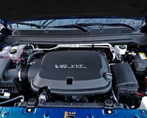 Between the front wheel wells of this $495 optional Kinetic Blue Metallic painted truck is the standard 3.6-litre V6 that’s good for 308 horsepower and 275 lb-ft of torque, the latter from 4,000 rpm, driving the rear axle or both via part-time four-wheel drive and an efficient eight-speed automatic transmission. The combination gets a claimed 15.0 L/100km city, 13.0 highway and 14.1 combined fuel economy rating, thanks in part to cylinder deactivation under light loads.
