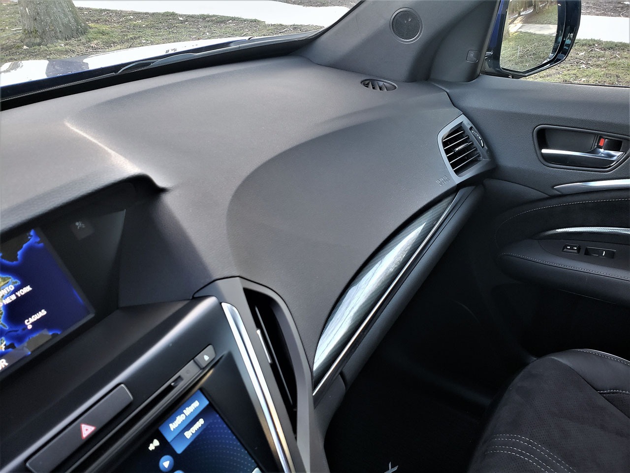 As for features pulled up from Tech trim, the list includes navigation with voice recognition, a sun position detection system for the climate control, a 10-speaker ELS Studio surround audio upgrade, hard disk drive (HDD) media storage, AcuraLink subscription services, front and rear parking sensors, and Blind Spot Information (BSI) with rear cross traffic monitoring.
