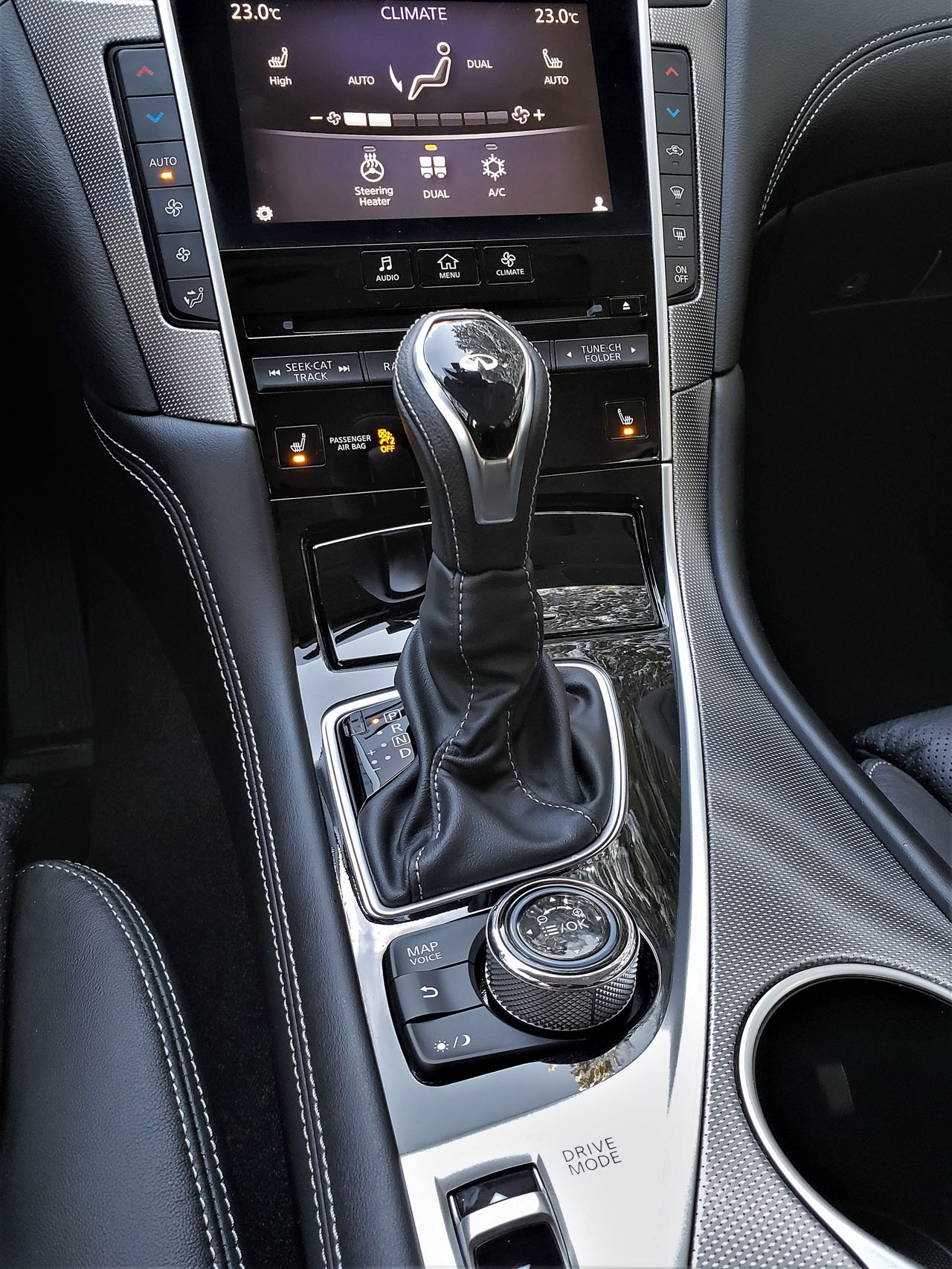The Q50’s seven-speed automatic is truly and advanced gearbox. (Photo: Karen Tuggay)