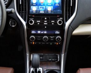 Limited trim, starting at $46,495 in standard eight-passenger layout or $46,995 in its seven-passenger configuration with second-row captain’s chairs, adds the larger 20-inch alloys mentioned earlier, plus steering-responsive full low/high beam LED headlights with automatic high beam assist, black and ivory soft-touch interior surfaces, a heatable steering wheel, an upgraded gauge cluster with chrome bezels and light blue needles (in place of red), and a 6.3-inch colour multifunction display atop the dash that shows the time, temperature and dynamic features such as an inclinometer, while a navigation system with detailed mapping is included within the infotainment display, as is SiriusXM Traffic, whereas additional Limited features include a 14-speaker 792-watt Harman/Kardon audio system, a 10-way power-adjustable driver seat upgraded to include powered lumbar support and cushion length adjustment, driver’s seat and side-mirror memory, a four-way power-adjustable front passenger seat, leather upholstery, two-way heatable second-row outboard seats, integrated rear door sunshades, third-row USB ports, and more.