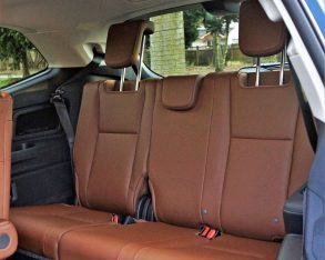 The seats are extremely comfortable and wide, good for large people yet also accommodating for my five-foot-eight medium-build body type. With the driver’s seat set up for my long-legged, short-torso frame, meaning that it was pushed farther rearward than it would be with some other people of my stature, I still had no problem comfortably reaching the steering wheel when the column was extended as far back as possible, plus when walking around to the second row and climbing in directly behind the driver’s seat I found the rear passenger accommodations very spacious and comfortable. In fact, there was about 10 inches of nothing between my knees and the front seatback, plus more than enough room to move my head and shoulders around.