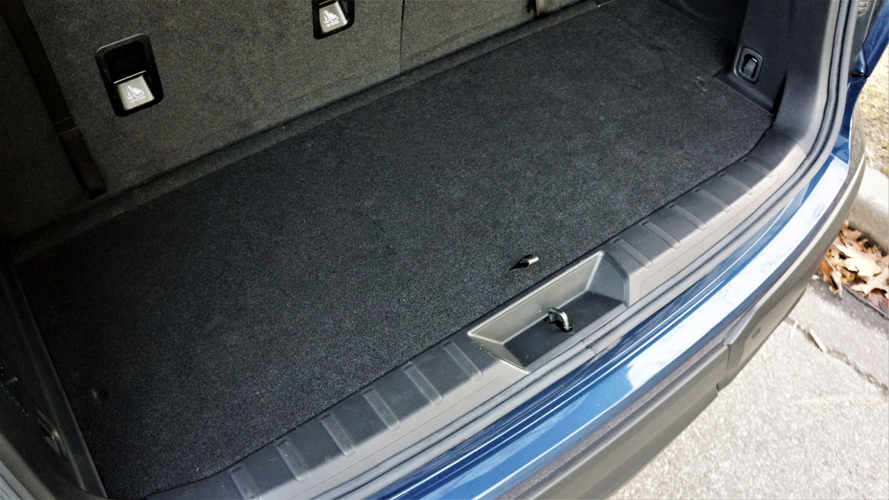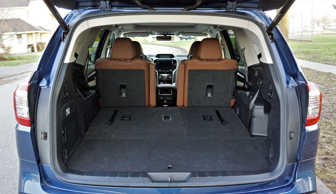 As noted earlier, there’s a fair bit of room behind the rearmost seats for gear, this space about as large as a full-size sedan’s trunk, while below the load floor there’s another compartment for stowing what-have-you along with the retractable cargo cover when not in use. Folding the 60/40-split third row down is a little bit awkward, but it works well enough. First you’ll need to manually slide the headrests into the seatbacks, and then tug a strap on top of the seats before pushing the seats forward. To get them back up, just pull the longer strap that’s attached to the cargo floor/seatback. The second row folds down by first unlatching it, so you can slide it forward, and then unlatching a second release at which point you can slide them back if you want to match up each side. There’s certainly a lot of space for luggage or building materials, but the captain’s chairs don’t form a very flat loading surface. I’m guessing it would work better with the standard bench seat, so if you’re doing a lot of hauling you may want to purchase one of the Ascent’s lesser trims.