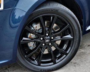 You might have noticed that my tester’s wheels are hardly polished alloys, or at least they’re not silver, the glossy black 20-inch rims included as part of a $900 Appearance package that also adds a gloss-black exterior treatment to the centre grille bar, side mirror caps, and liftgate appliqué, plus Agate Black paint to the roof pillars and rooftop, while the interior gets a unique leather-wrapped steering wheel with Meteorite Black bezels, an exclusive graphic design on the instrument panel and door-trim appliqués, special leather seat upholstery with Light Earth Gray inserts and Dark Earth Gray bolsters, and floor mats with unique logo.