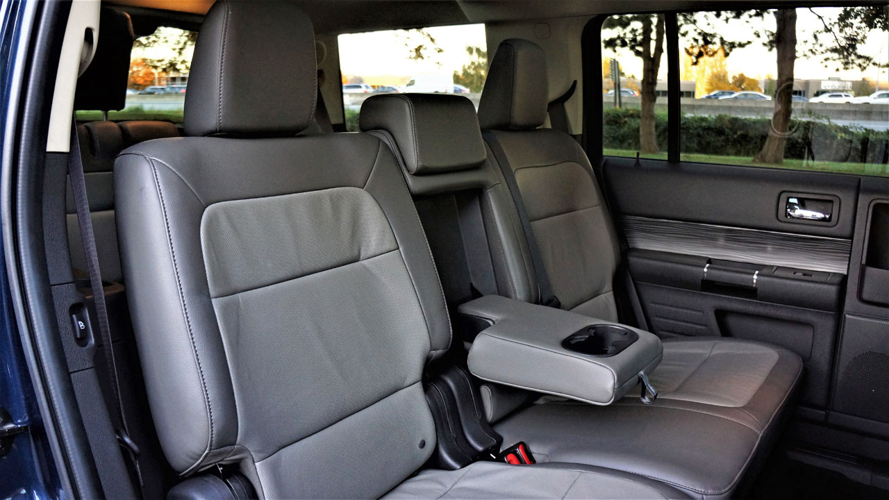 Total passenger volume is 4,412 litres (155.8 cu ft), which means every seating position is roomy and comfortable. Really, even third row legroom is good, while headroom is generous due to a tall roofline and the Flex’s width makes sure no one feels claustrophobic. The open-airiness of the panoramic sunroof really helps in this respect too, and its three-pane design is also smart because it provides the structural rigidity such a large vehicle like this needs. Thoughtful features I really like include the massive bottle holders in the rear door panels, which are really useful for drive-thru excursions, especially considering the grippy cupholders in the centre armrest are a bit on the small side.