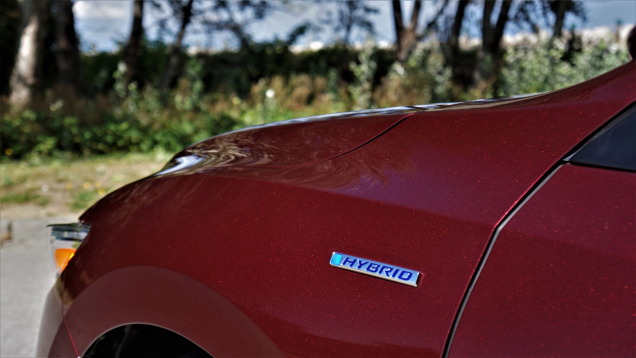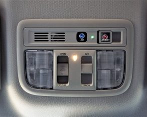 The primary instruments are fully digital, with those on the right housing a speedometer and gas gauge, and the left portion of the cluster featuring a multi-information display filled with helpful hybrid info, including a battery charge indicator. Switchgear on the steering wheel spokes control the MID, and I must say they’re very well made and ideally fitted in place, just like all the buttons, knobs and rockers throughout the rest of the cabin. These include controls on the overhead console too, which houses a set of incandescent reading lights, an emergency assist button, a HomeLink garage door opener, and a rocker switch for the regularly sized powered glass sunroof.